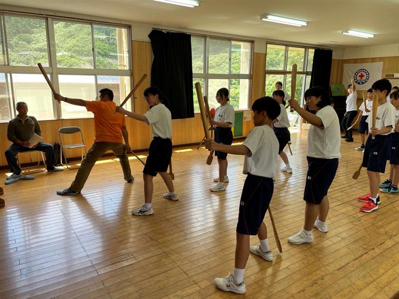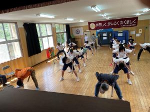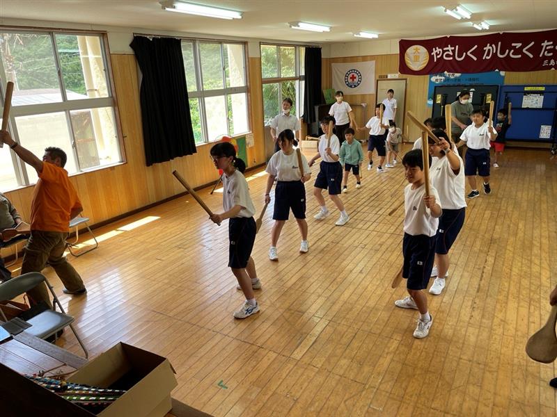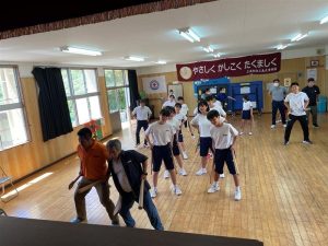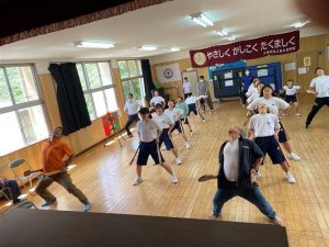 郷土芸能 「面踊り」「弓矢踊り」を地元の方が教えに来てくださいました。