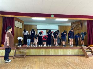 入退場の練習をしました。きれいな礼です。本番もその調子で頑張ってね。