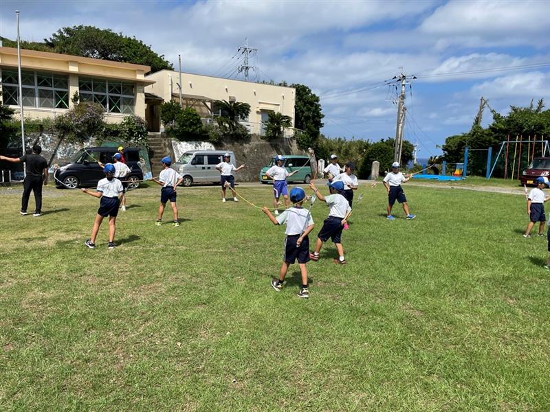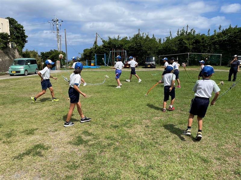 弓の持ち方や回し方まで入るとかなり複雑な動きですが、子どもたちは、楽しそうに踊っている姿が多く見られました。