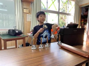 「キラキラ星」をグロッケンと鈴とハンドベルと鍵盤ハーモニカで合奏をしました。