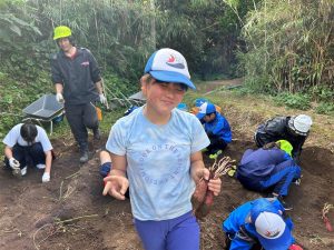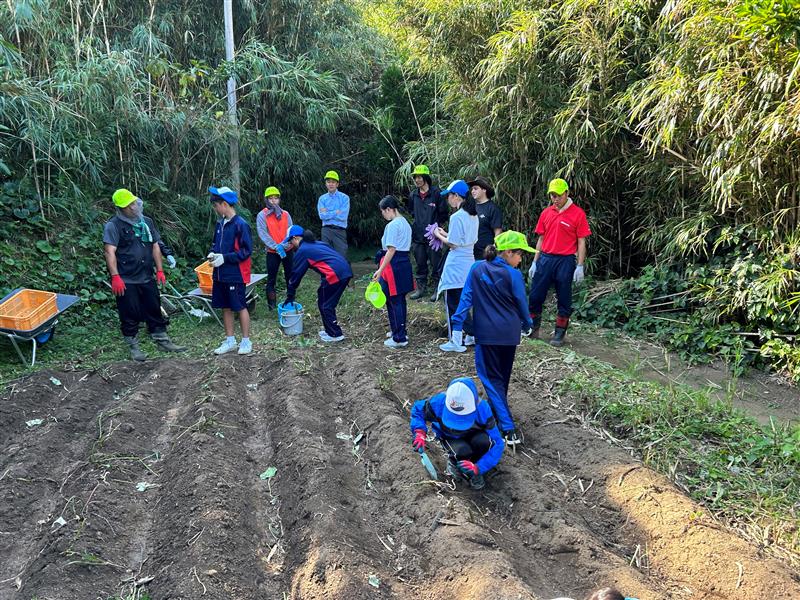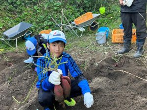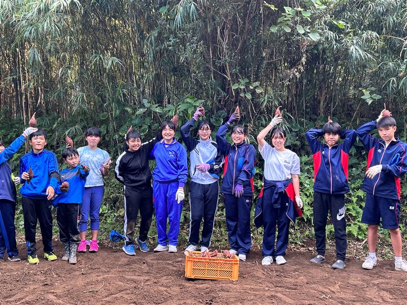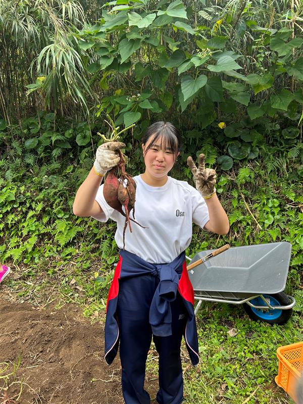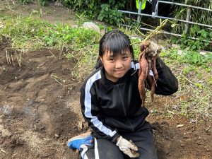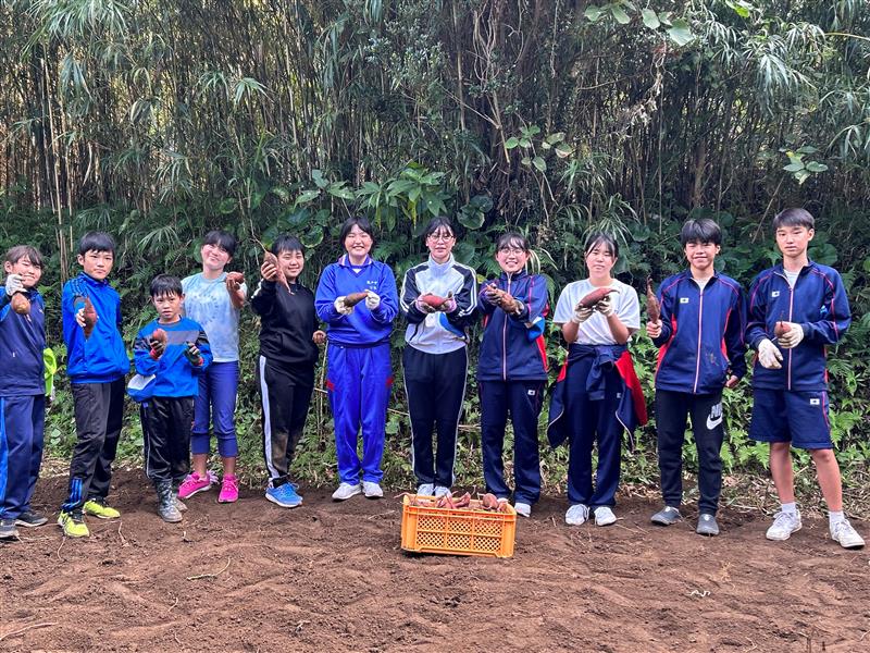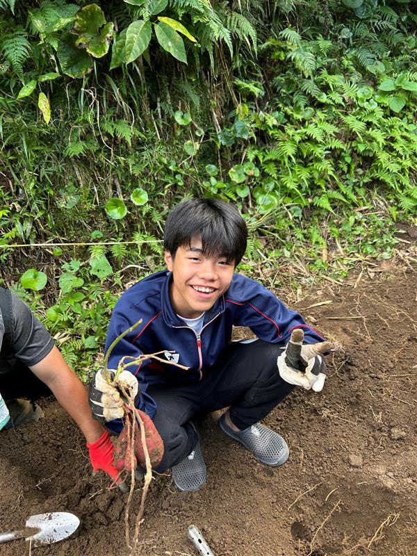 5校時 5・6年生と後期課程の生徒で芋掘りを行いました。