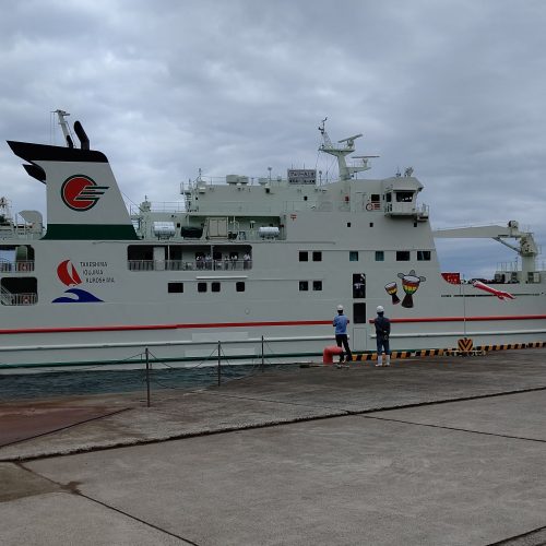 今日はあいにくの雨模様となりましたが,フェリーは予定通り9: