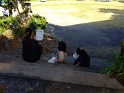 今日の昼下がり,玄関前の階段付近の様子です。 1年生は,暗算