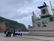 竹島のみなさんが竹島に帰る日です。 港で見送り式を行いました