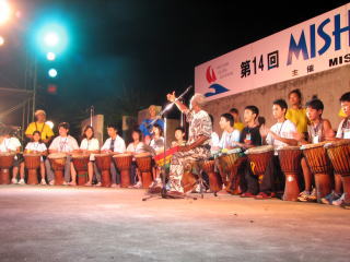 8月上旬に行われます。 三島村にある4つの小中学校の児童生徒(小5〜中3)が硫黄島に集まり,ジャンベの神様であるママディ・ケイタさんから直接指導を受けています。 2010年は,沖縄のエイサーチーム「若太陽」と演奏をしました。 |