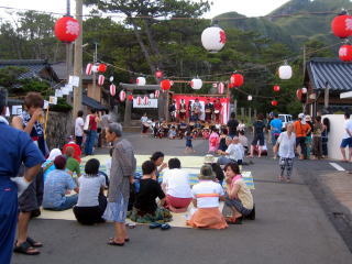 7月に行われるお祭りです。 児童生徒のジャンベ演奏やのど自慢大会などがあり,児童生徒が作った灯籠が会場を彩ります。 地区青年会による屋台も並びます。 |