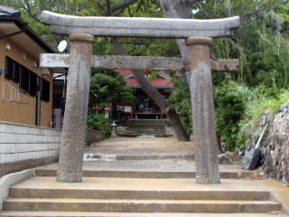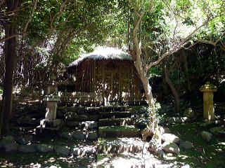 硫黄大権現宮とも呼ばれ,安徳帝晩年の皇居跡とも伝えられています。 硫黄島に流刑になった成経と康頼は早く許されて都に帰れるようにと紀州熊野三所権現を勧請してここに祀りました。 後に安徳天皇が居住されてから,来真三種権現と改められ,三種の神器が内陣に祀られたといいます。 |