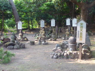 1177年,平家打倒を謀ろうとした罰として硫黄島へ流された俊寛が暮らしていたとされる住居跡に建てられた小さな祠です。 共に流されてきた2人は罰を許されましたが,俊寛だけは平清盛の怒りが解けず,ひとり島に残され,失意のうちに37才で生涯を閉じました。 このあたりでは経文の書かれた小石が多く見つけられています。 |
