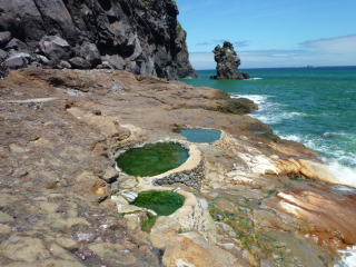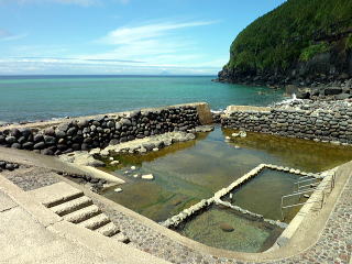 島の北の海岸に位置する温泉で,潮がひいたときに利用することが できます。 東温泉とはまた,趣の違う風景を楽しむことができます。 天然風呂で無料で入ることができます。 |