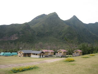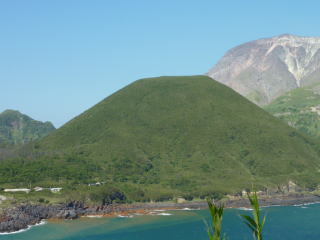 標高約240mの火山で,玄武岩の溶岩が見られます。 硫黄島集落の生活用水の水源でもあります。 三島小中学校の校訓では, 『おおらかな稲村岳のように あかるく』 とあります。 |