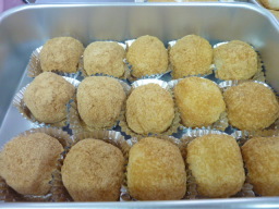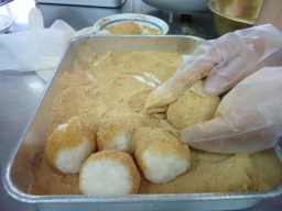 | ごはんのかわりに,おはぎを作りました。 出来たてのおはぎは,いくつも食べられそうなくらいおいしかったです。 |