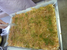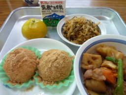 | やまいもをたっぷり入れて,オーブンで焼き上げます。 給食室からいいにおいがしてきて,いつもよりおなかがすいてしまうそうです。 |