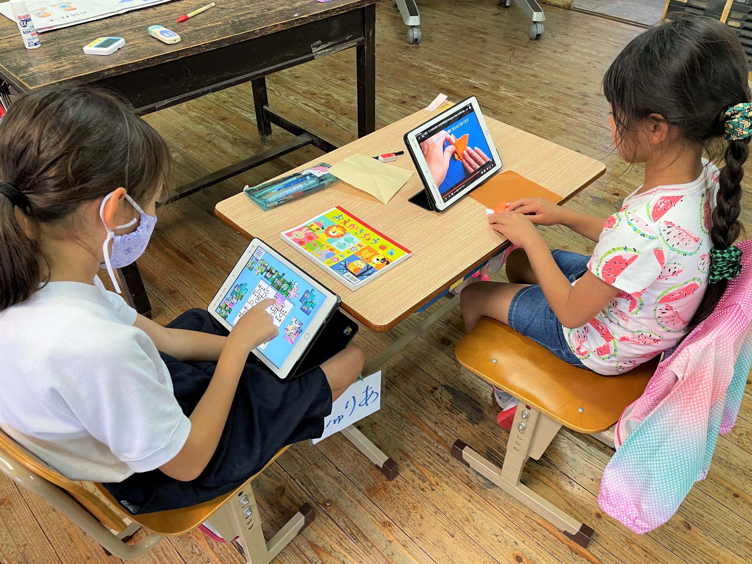 タブレットを使っている子が多いですね~。授業でも使っているので,先生達より操作に慣れたもんです。
