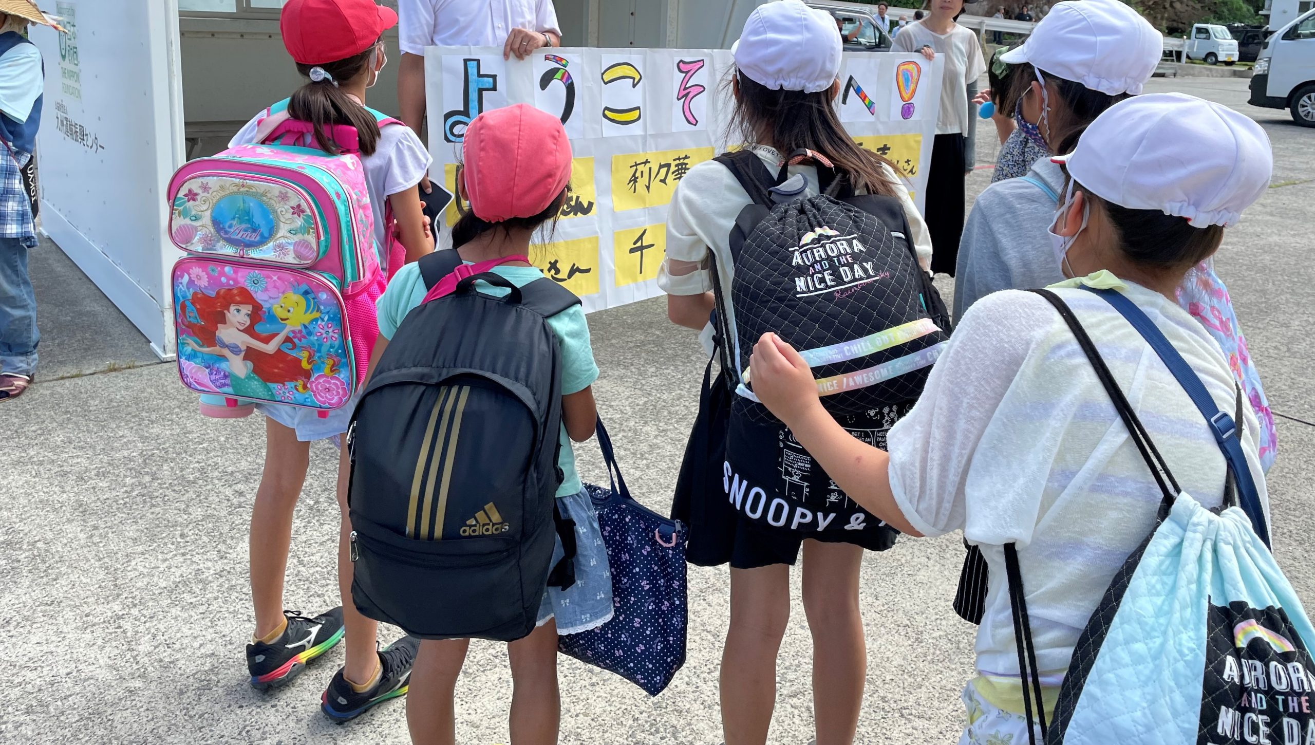 片泊学園に三島4校の3・4年生が集まります。遠隔授業では会うけれど,なかなか直接は会えません。みんなと会えるの楽しみだ。2泊3日の旅行の始まり~♪
