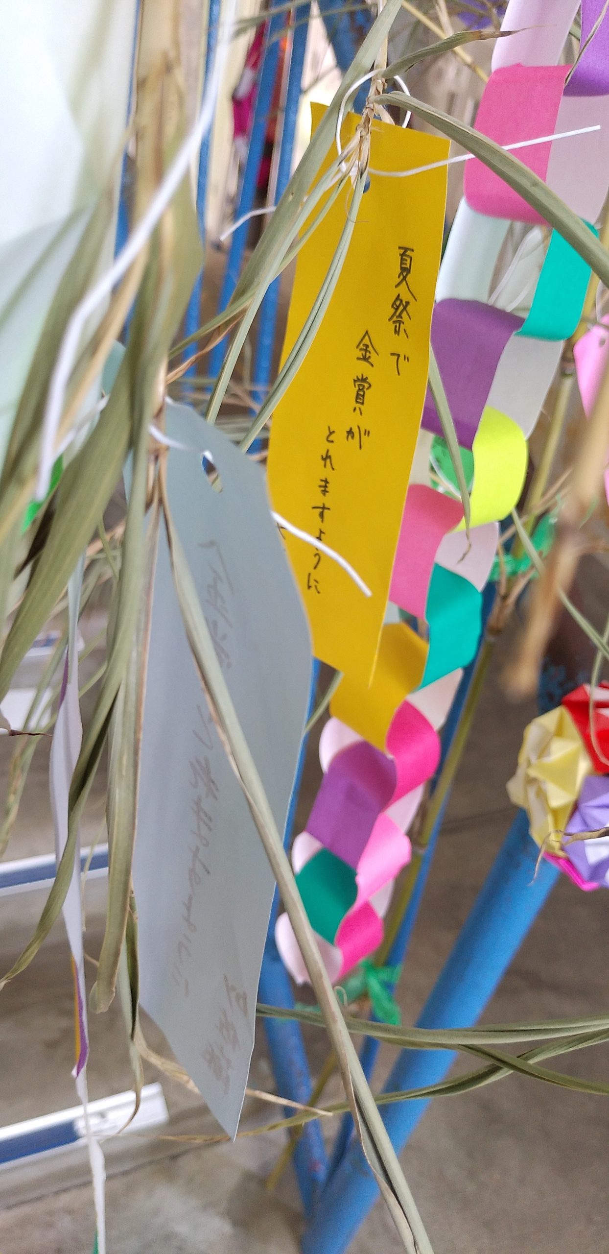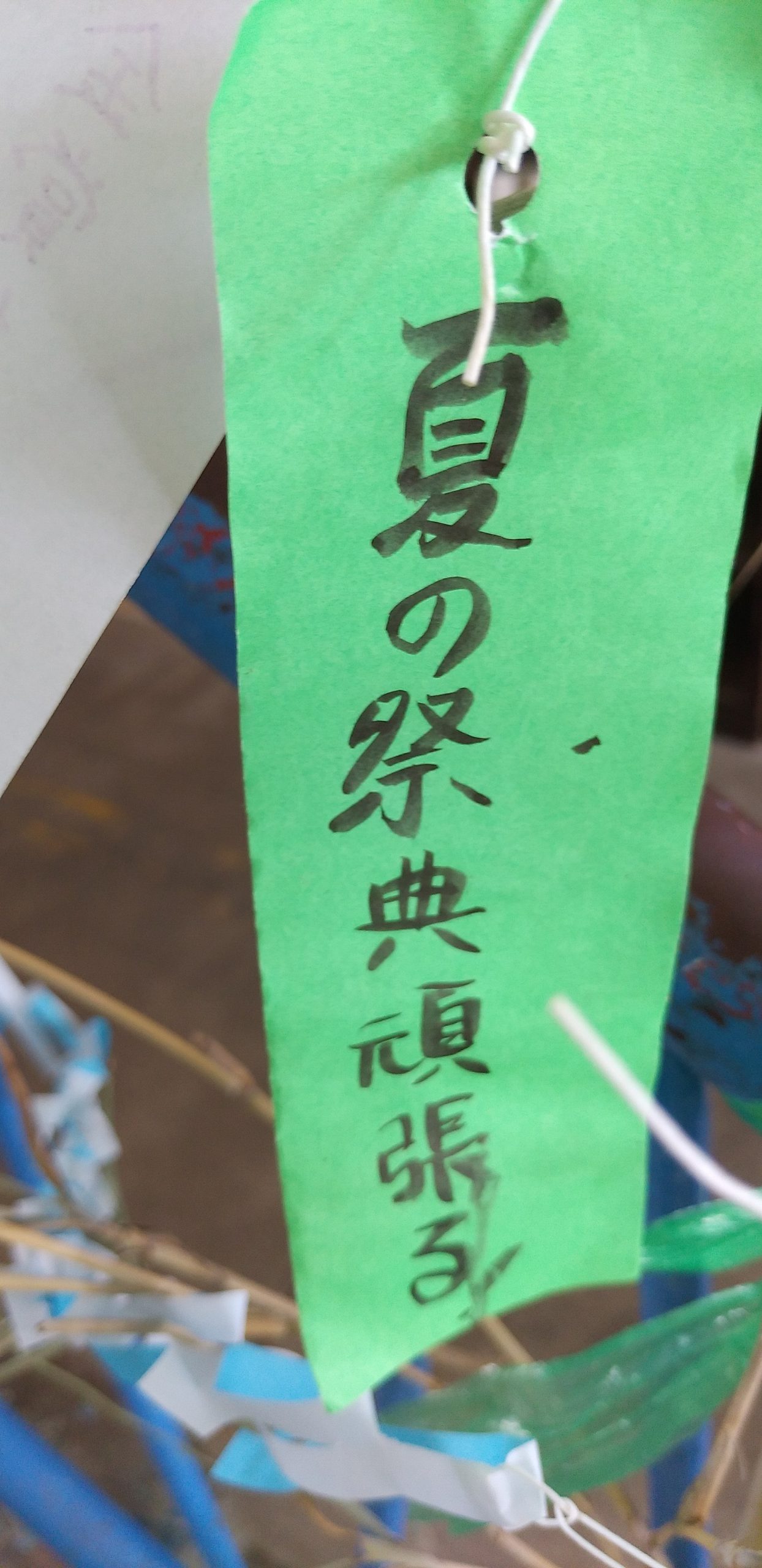 硫黄島学園の玄関には,子供たちが作った七夕飾りが飾ってあります。