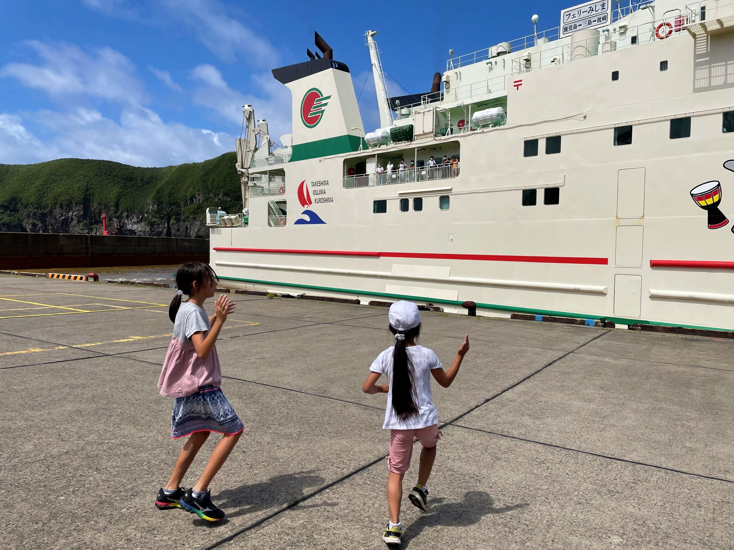 硫黄島についたら,竹島のお友達ともお別れです。3日間ありがとう。