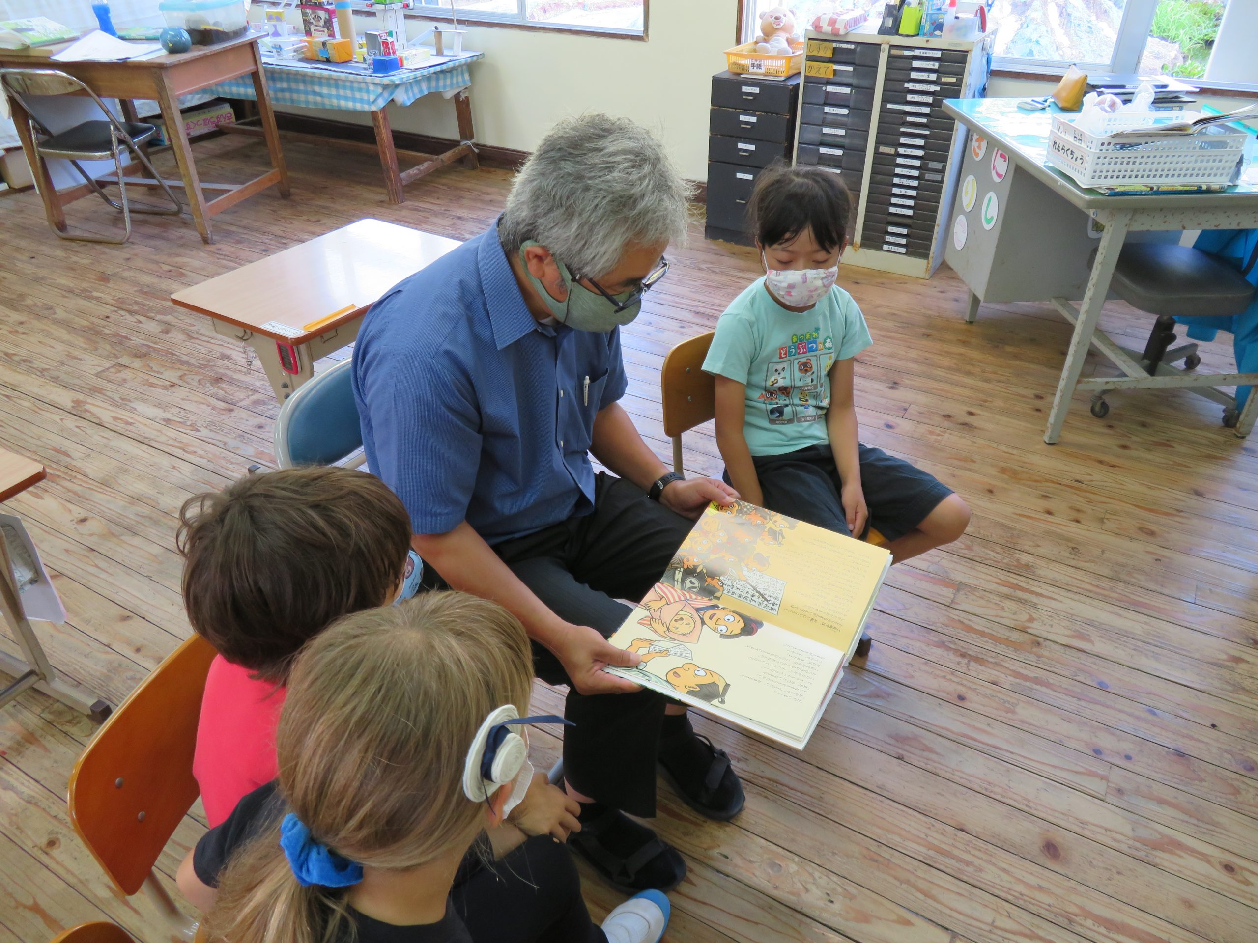 後期課程は,普段授業で関わりのない前期課程の先生が読み聞かせ。