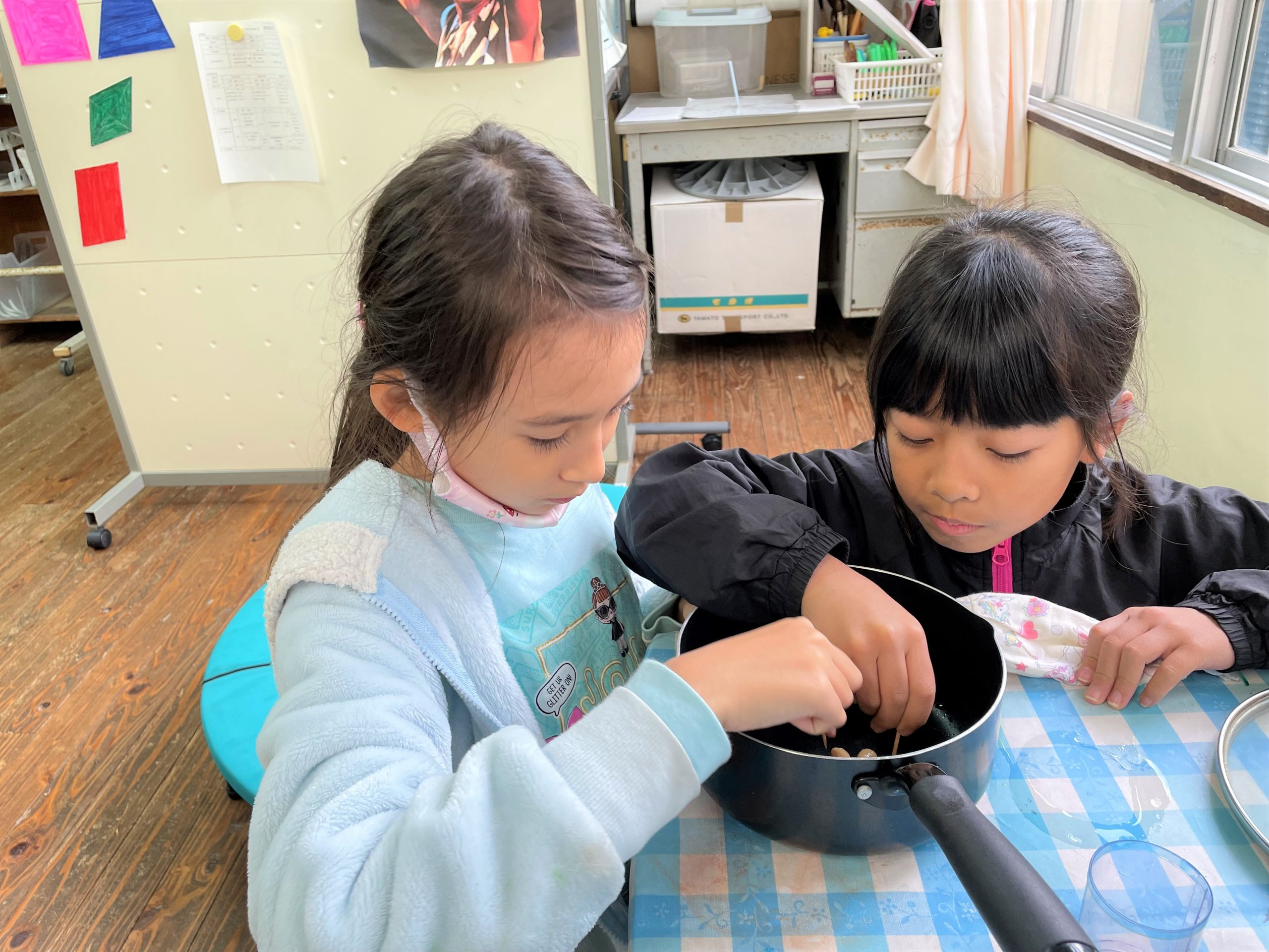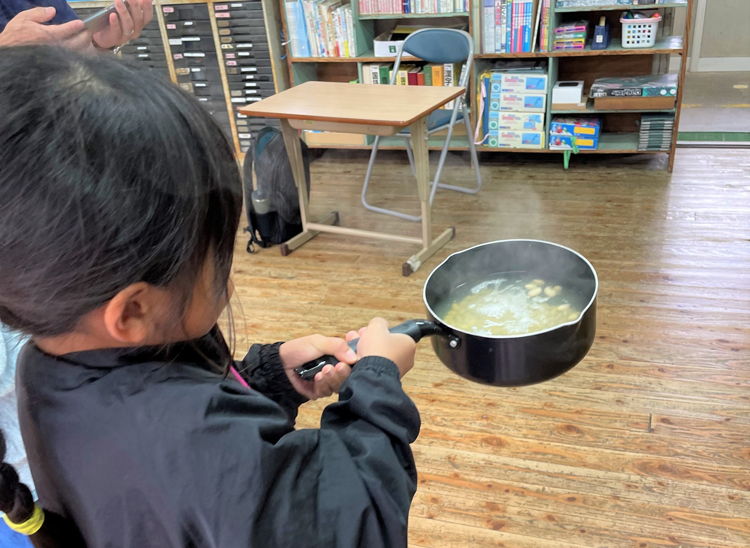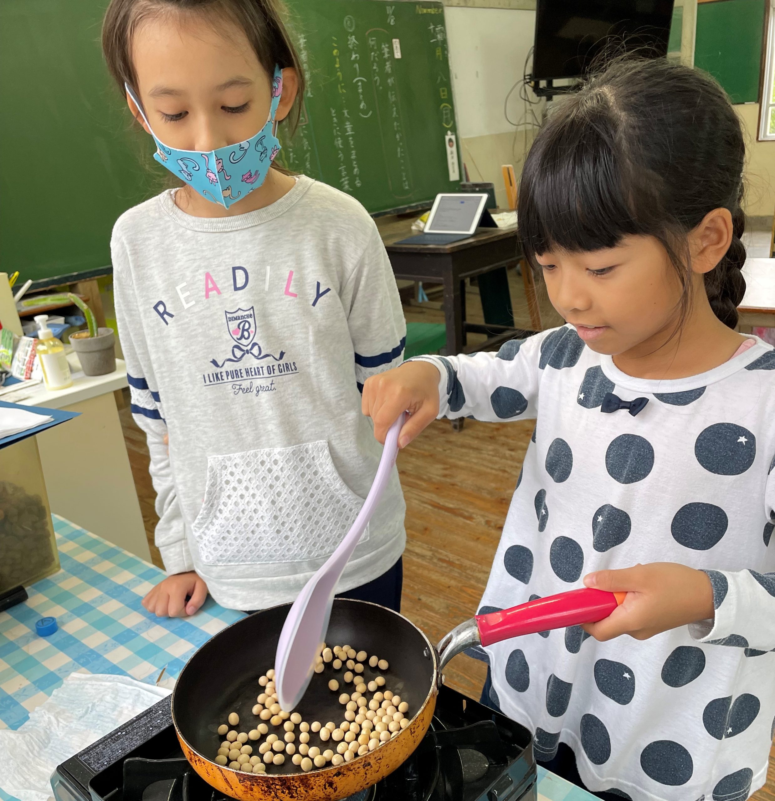おいしい~!!パクパク止まりませんでした。子どもたちは,いった豆の方がお好みだそうです。