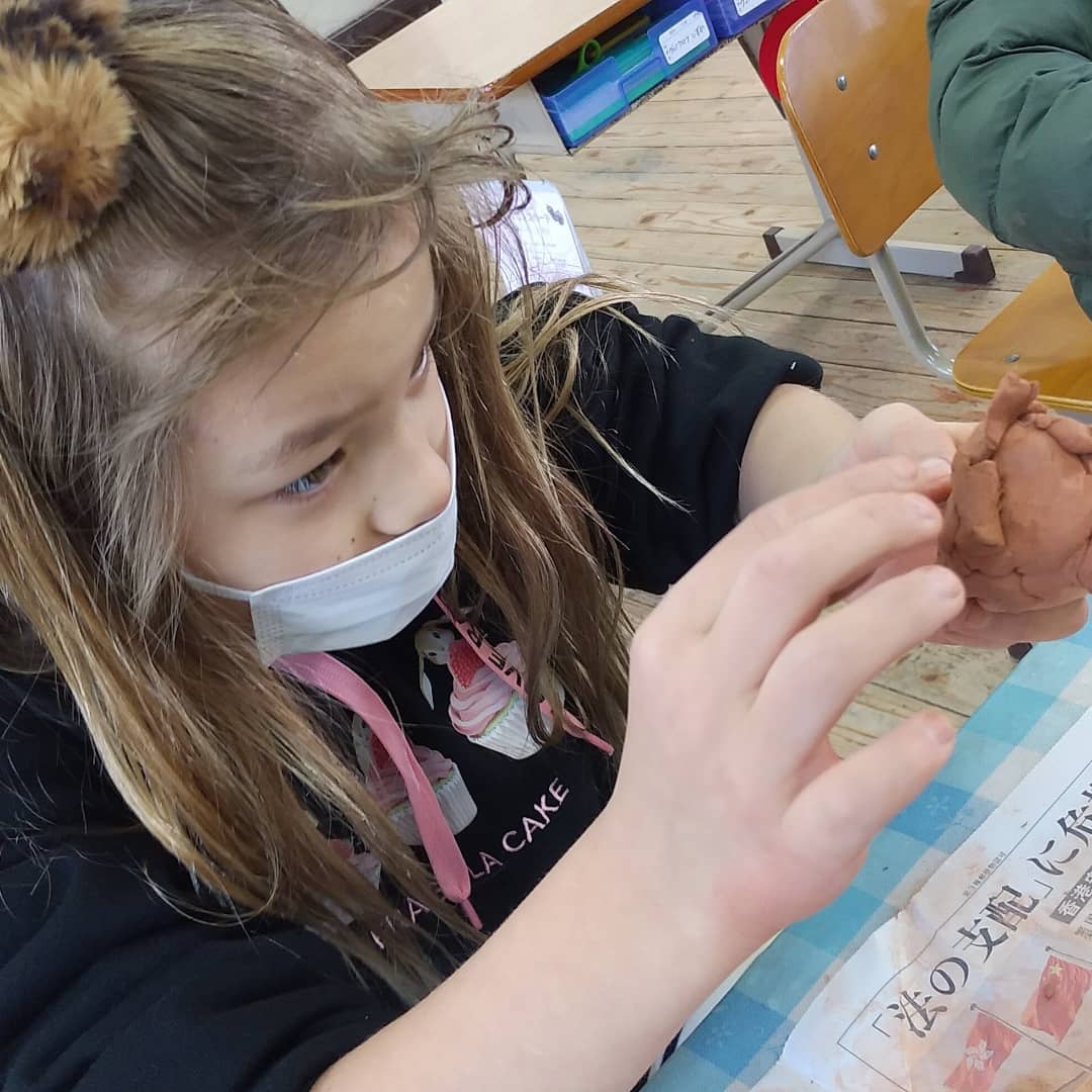 今日は、土粘土を使って大きな作品作りをしました。恐竜と、巨人を作っていましたが、なかなかの迫力でした。