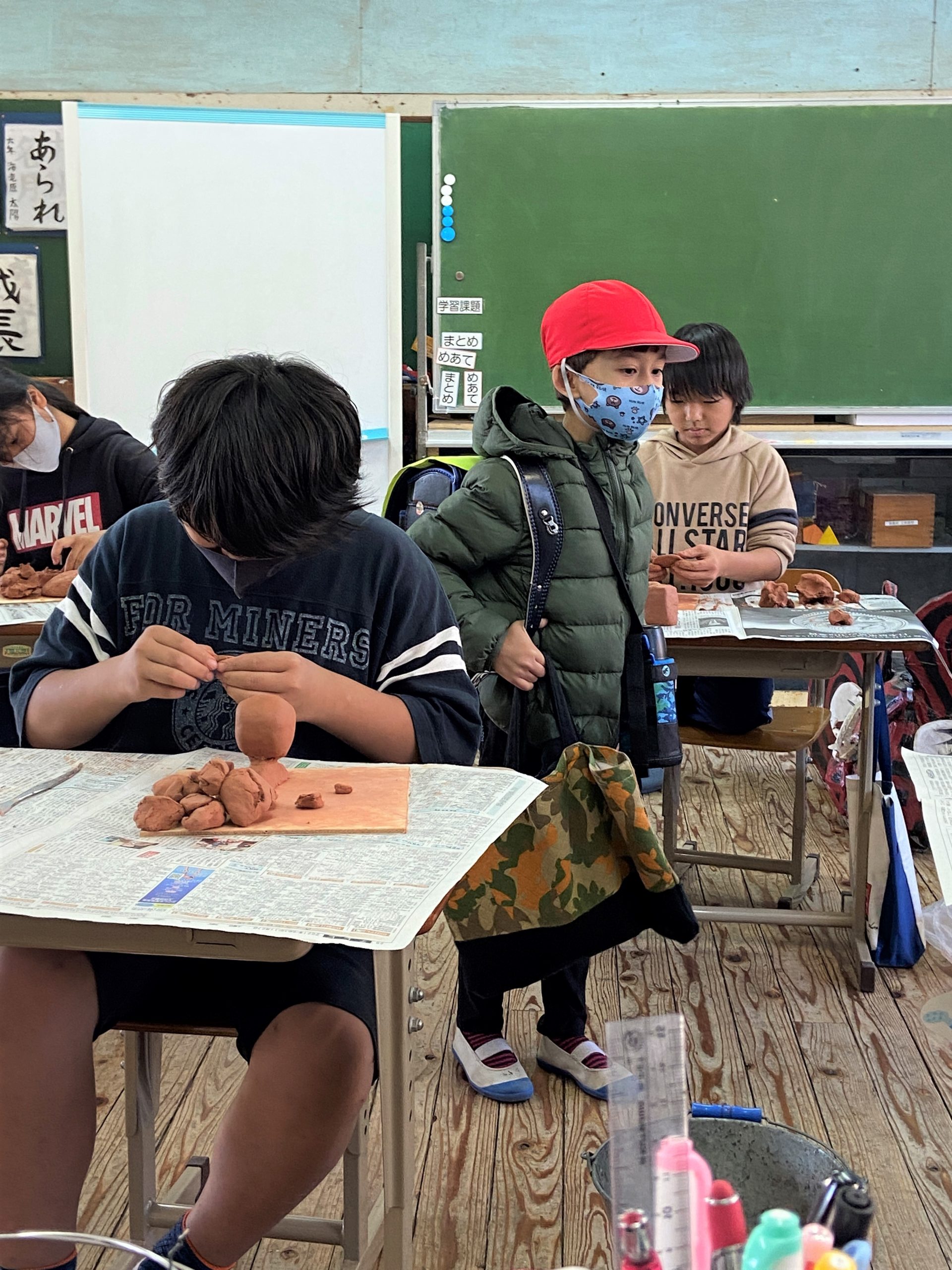 5・6年生の図工では,それぞれが日頃思っていることややってみたいことを粘土で表現しました。