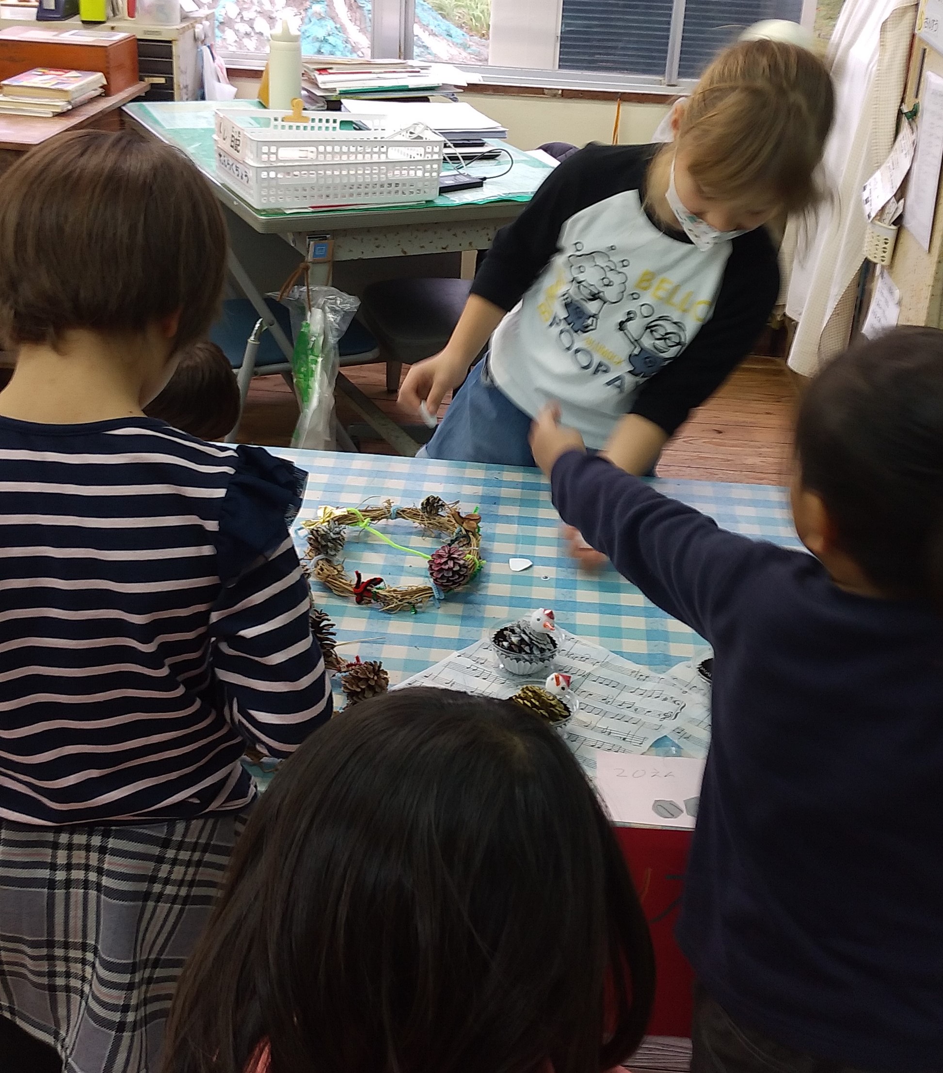 クリスマスグッズや,パン屋さんでは紙のお金を使って買い物をしてもらい,秋のおもちゃ屋さんでは,どんぐりボーリングや,やじろべいなどで,遊んでもらいました。