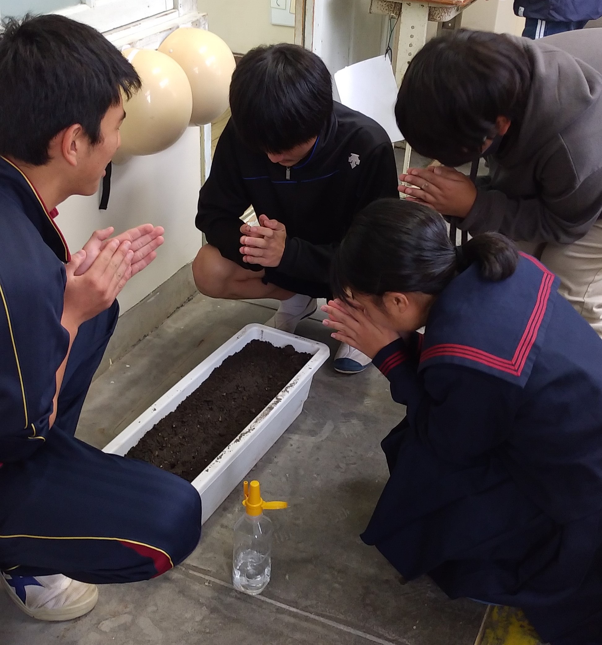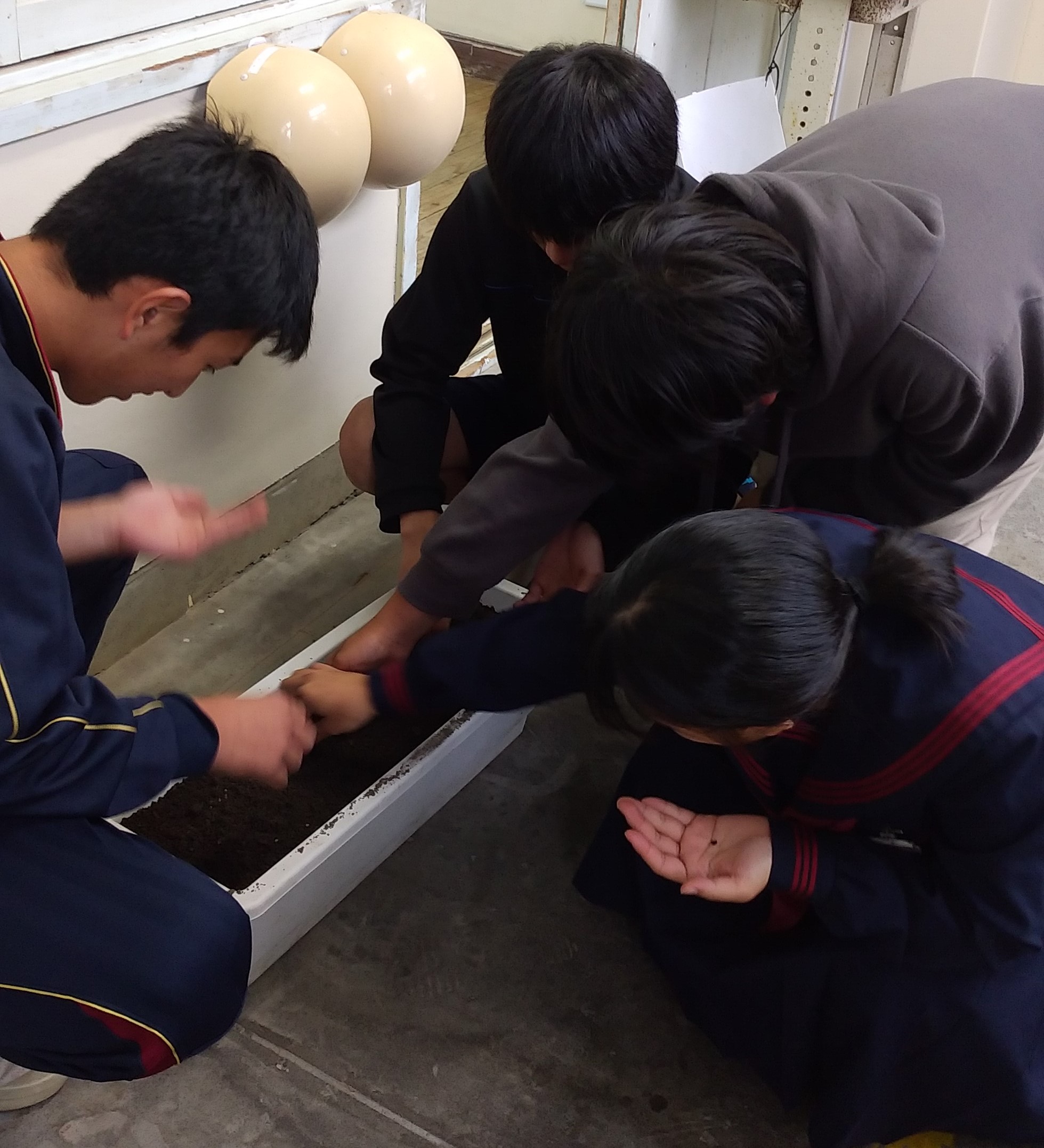 整備委員会の子どもたちに見せたところ,4月に植えるのではなく,「今植えたい!」と9年生。発芽率が高いということだったので,暖かい室内で育ててみることにしました。