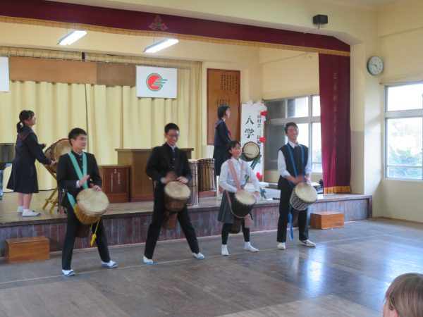 もう卒業間近の9年生による、英語の劇と島立ちのジャンベが行われました!