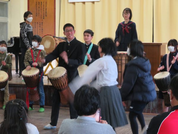 島立ちのジャンベでは、構成など自分たちで全て考えたジャンベや歌やダンスを交えた見事な演奏を披露。