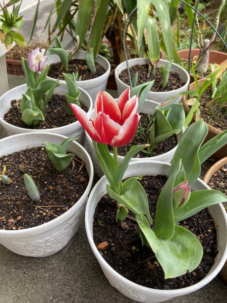 学校主事の先生が育てていたチューリップの花が咲きました!