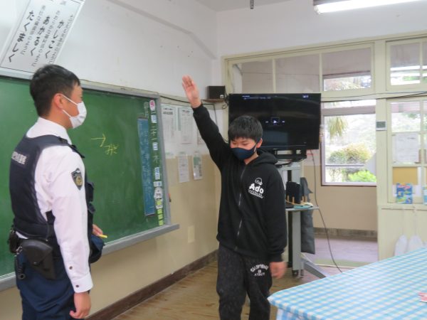 駐在所の方にお越しいただき,交通安全・危機回避訓練を行いました。
