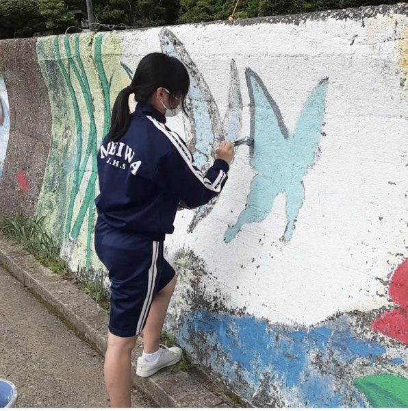 後期生の美術で、港の壁画の修復を始めました。