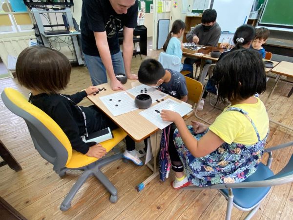 こちらは初めての子どもたちです。先生に石の置き方を聞きながら、囲碁を勉強中です。