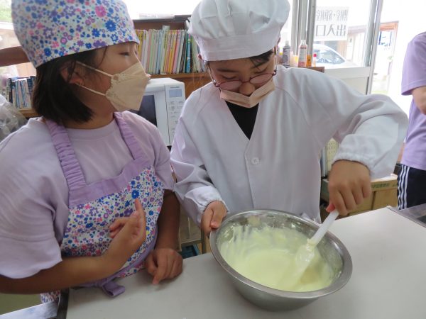 今日はクラブ活動で地域の方にスイーツのつくり方を教えていただきました。