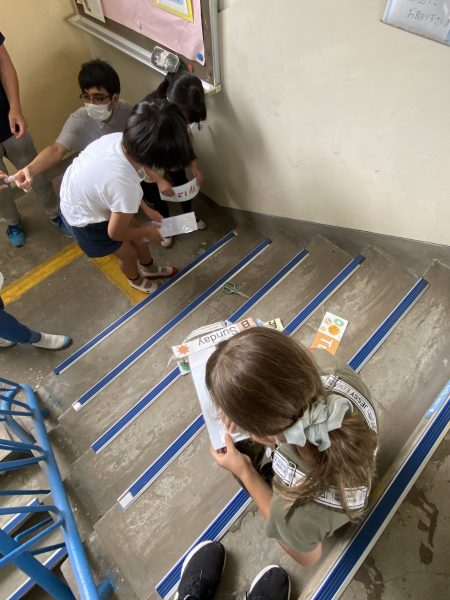 Today, the 3rd and 4th graders made new cards with the days of the week on them for our staircase!