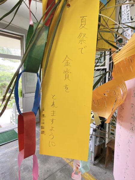 前期生が作った七夕飾りと前期生、後期生の書いた短冊が飾られています。