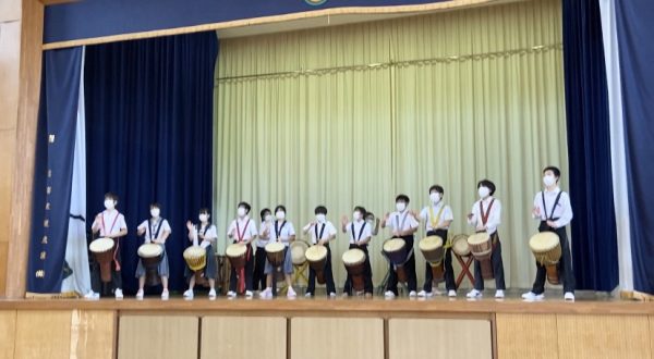 緊張した面持ちの子ども達でしたが、演奏が始まると、素晴らしいジャンベのリズムを披露してくれました。