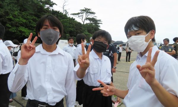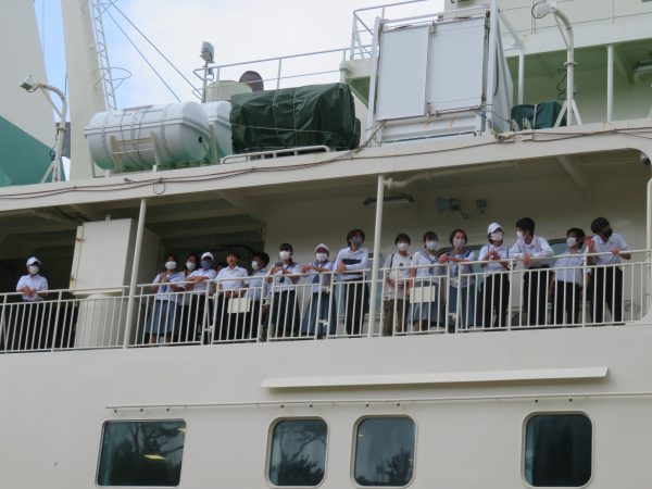 港では前期生や地域の方々,先生方に見送られフェリーに乗り込みました。