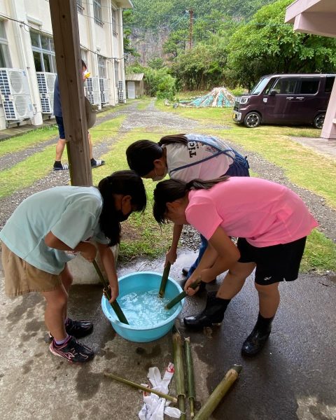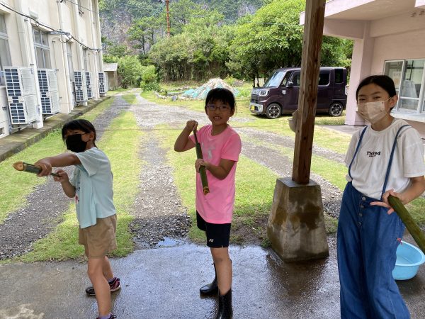 地域の方に竹で作る水鉄砲作りを教えていただきました!