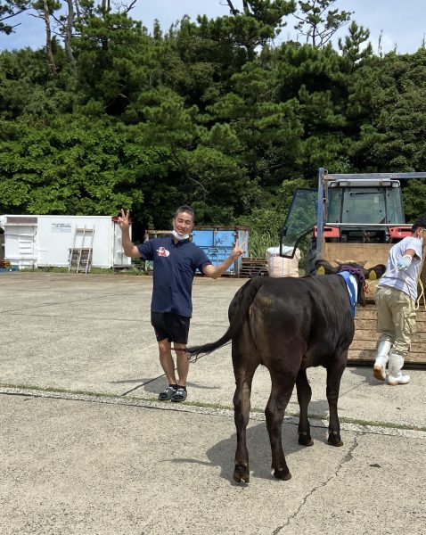 通船後に、フェリーで運ばれてきた牛さんに遭遇。