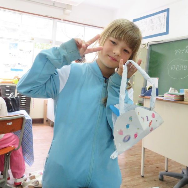 お菓子を入れるバッグを作ったりと、思い思いに作っていました。