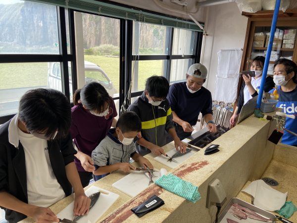 魚さばき体験や硫黄島周辺に住んでいる魚についての講話をお聞きしました。