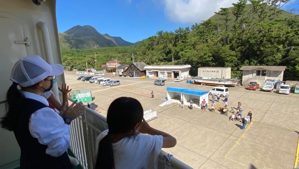 出発式を行い、地域の方々に見送られながらフェリーに乗船しました。