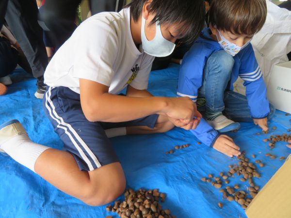 島の子たちはペース良く選別していて,選別が初めての子たちは島の子や地域の方に聞きながら頑張っていました。