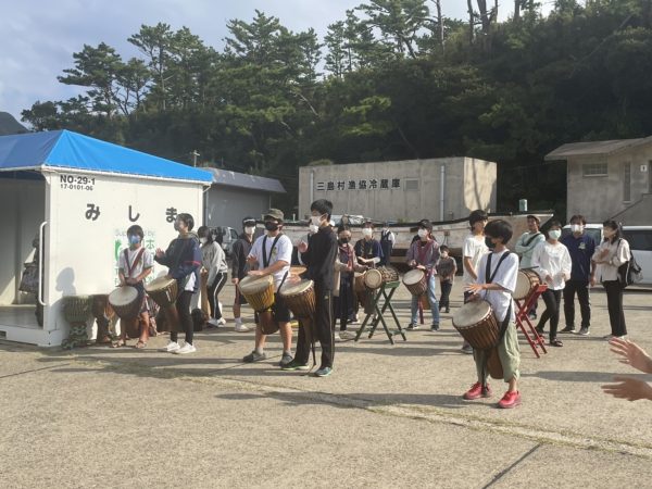 ジャンベで出迎え、ジャンベで見送る、硫黄島らしいお別れです。