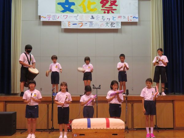 トランペットやピアノ,島ならではのジャンベを取り入れ,学園でしかできない演奏を目指しました。