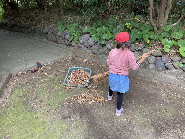 落ち葉や木の実,枝などをみんなで協力して集めました。