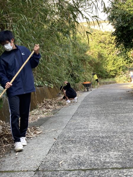 明後日行われる持久走大会に向けて,後期生で清掃作業をしました。