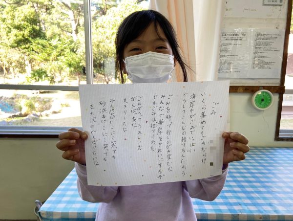 文化祭の体育の発表で跳び箱が跳べたこと、海岸清掃をして思ったことを詩に表しました。
