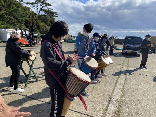 島に残っている子供達でお出迎えのジャンベとお見送りのジャンベの演奏を行いました。