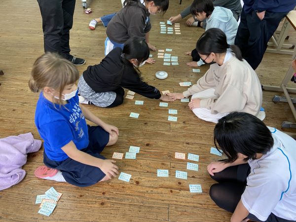 来週は、百人一首・かるた大会です。本番に向けて、3~6年生で百人一首の練習を行いました。